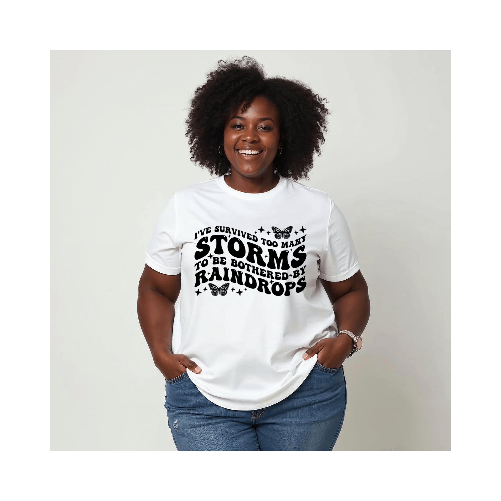 Why is the "I Survived Too Many Storms to Be Bothered by Raindrops" T-shirt so empowering? It's a bold reminder of strength and resilience. It’s perfect for anyone who has overcome big challenges and refuses to be shaken by small problems. This tee celebrates perseverance, confidence, and unshakable energy—making it a powerful statement piece for everyday wear. It says, “I’ve been through worse, and I’m still standing stronger than ever!” 🌟💪